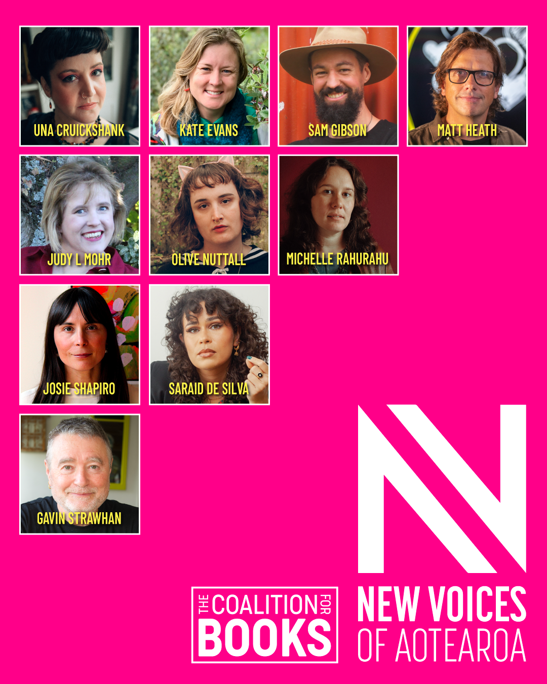 The Coalition for Books is thrilled to announce the inaugural New Voices of Aotearoa, an initiative that aims to showcase up-and-coming, must-read, brilliantly talented authors of Aotearoa New Zealand adult fiction and non-fiction. We are proud to present this group of storytellers as the 2025’s New Voices of Aotearoa: